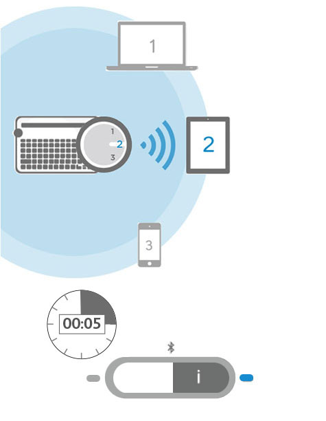 Keyboard is discoverable, ready for pairing. Connect the keyboard to usb port. Solid blue bluetooth pairing or reconnection is successful. Wenn sie die tastatur bereits über kanal 1 mit einem gerät verbunden haben, drehen sie den auswahlregler auf 2 oder 3. The status light blinks blue to indicate that the keyboard is discoverable, ready for pairing with your ipad.